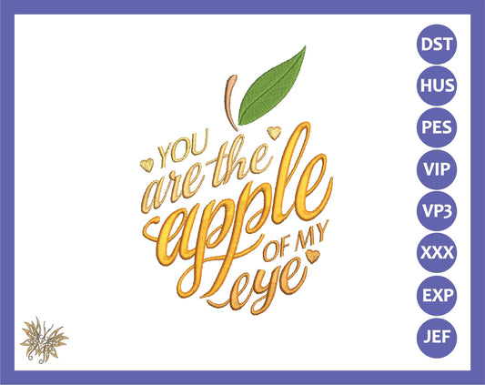 Apple Machine Embroidery Design with Inspirational Quote for the Apple of your Eye, Embroidered Student or Teacher Back to School Designs