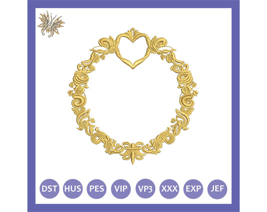Elegant Rose and Scroll Frame Machine Embroidery Design fits in 4x4 and 5x7 hoop, Antique Baroque Blank Monogram - 3 sizes Instant Download
