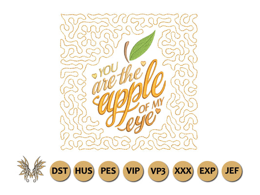 Stipple Stitch Apple Shaped Text Machine Embroidery Design with Inspirational Quote for Mug Rug or Embroidered Quilt Block. 5 sizes 8 format