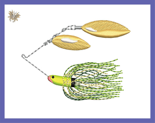 Spinner Bait Fishing Lure Machine Embroidery Design in 2 sizes and 8 formats with and without the text for Father, Son, Grandpa Fisherman