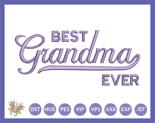 Best Grandma Ever Machine Embroidery Digitized Design File for hats, sweatshirts, pillows, 3 Sizes 8 Formats included, Instant Download