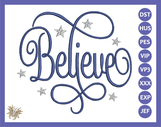 Believe, Inspirational Words for Machine Embroidery, INSTANT DOWNLOAD