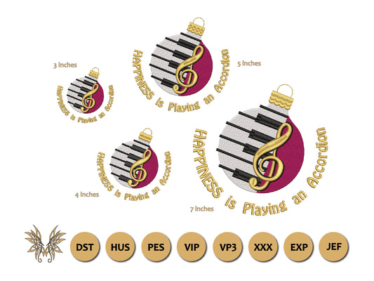 Accordion Keys Ornament Machine Embroidery Design for Ornaments, Mug Rugs, Reading Pillows, Music Teacher Gifts, DOWNLOAD Instantly, pes dst
