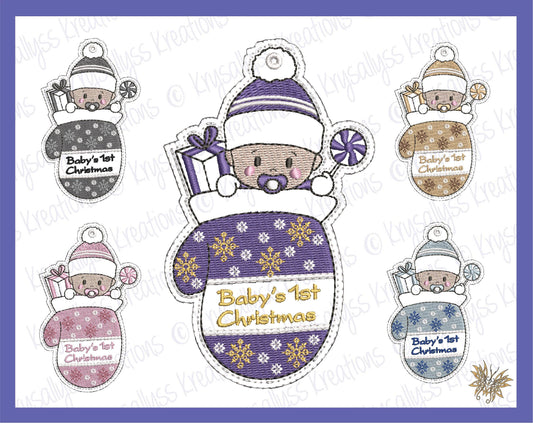 Baby"s 1st Christmas In-the-hoop Embroidery Design with bonus 2022 tag, Fits 4 x 4 hoop, 8 Formats including PES, DST, vp3 Instant Download