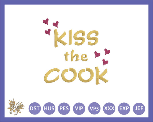 Kiss the Cook Machine Embroidery Design Pattern, Kitchen Word Art, Personalized Chef Apron, Cooking Tea Towel Embroidery, INSTANT DOWNLOAD