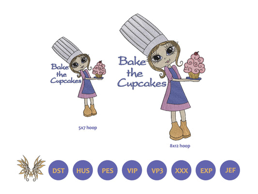 Cupcake Girl Machine Embroidery Design suitable for aprons, sweatshirts, pillows for Baker gift giving. Pastry Chef Gift. Digital Download