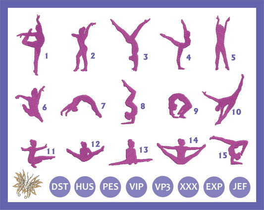 15 Small Gymnast Silhouettes Machine Embroidery Design Files in 8 formats fitting 4x4 hoop, Individual Poses for the Gymnastics Lover.