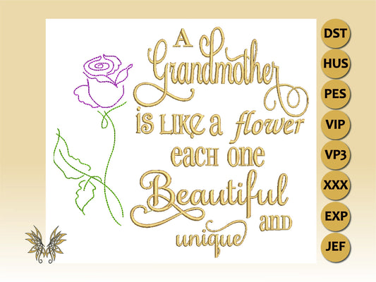 A Grandmother is Like a Flower Machine Embroidery Design, Reading Pillow Embroidery, Gift for Mother, INSTANT DOWNLOAD