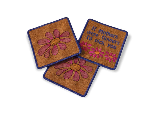 Daisies ITH Coaster Embroidery Design, Flowers for Mom In-the-Hoop Mug Rug quick stitch for DIY Spring Decor or Mother's Day gift, 4x4 Hoop