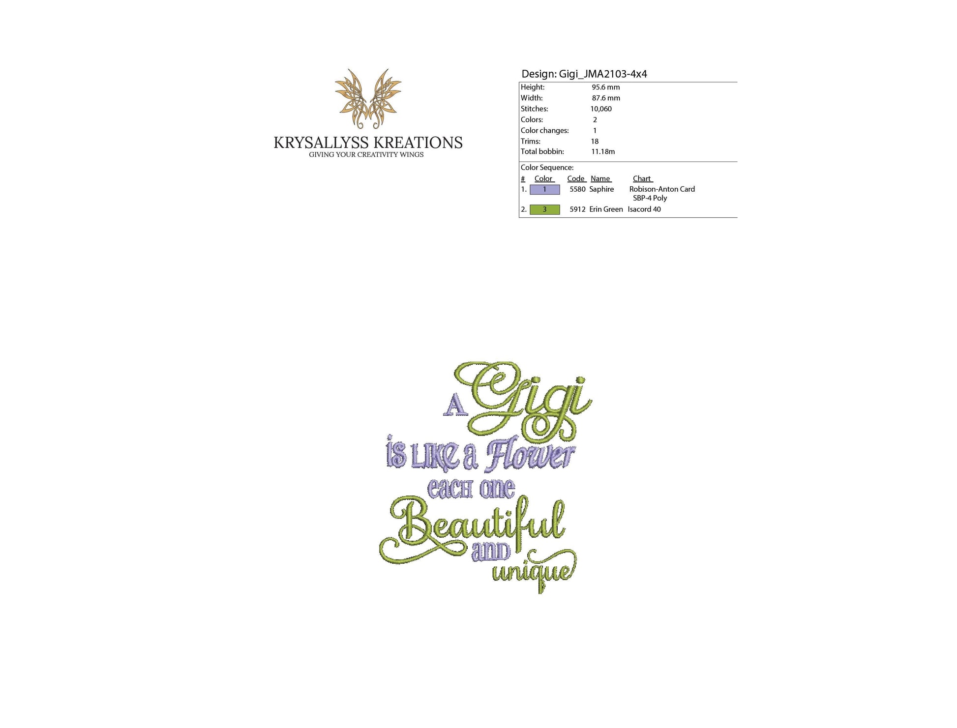 Inspirational quote says it all in describing how Gigis, like flowers are always beautiful and unique in their own way
