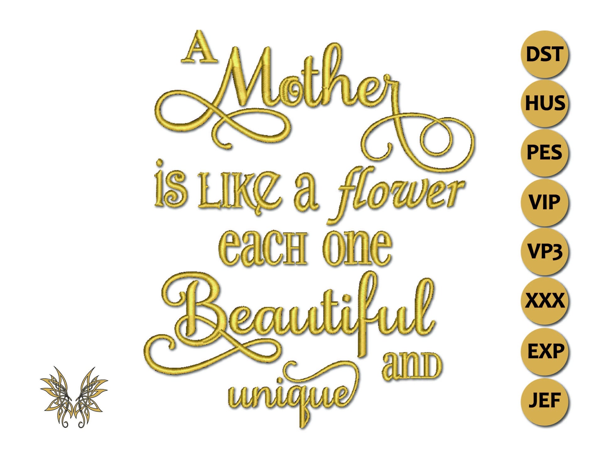 A Mother is like a Flower Machine Embroidery inspirational quote says it all in describing how Mothers, like flowers are always beautiful and unique in their own way