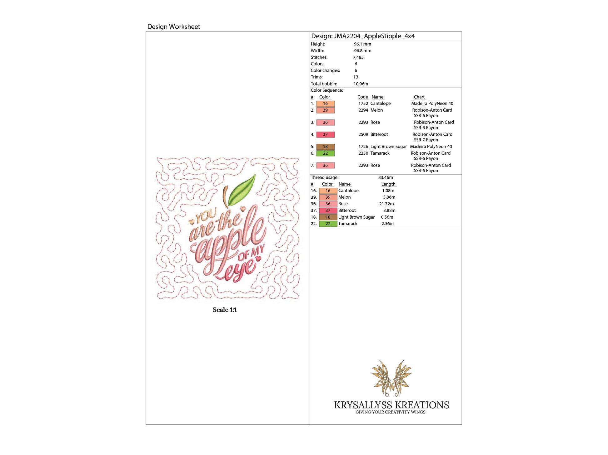 This design is available in 5 sizes: 4"x4", 5"x5", 6"x6", 7"x 7" and 8"x8"