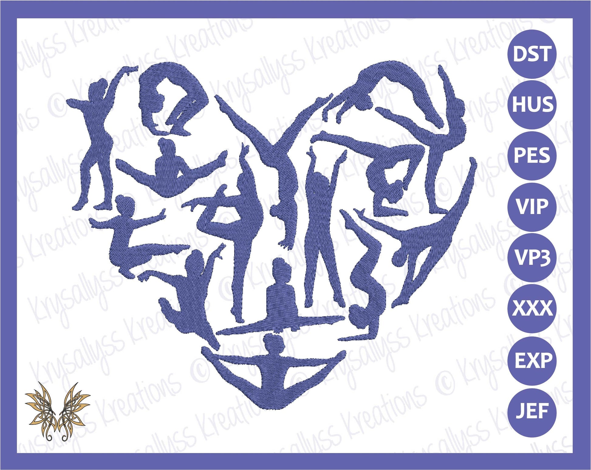 Gymnastics Heart Machine Embroidery Design File for the Perfect Gymnast Parent Gift. 4x4, 5x7, and 8x12 hoop sizes, 8 formats. Download now